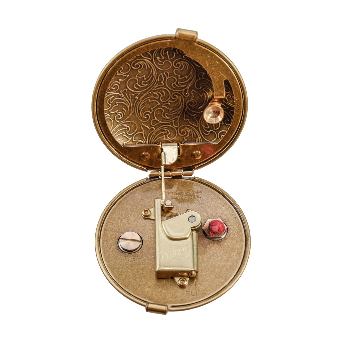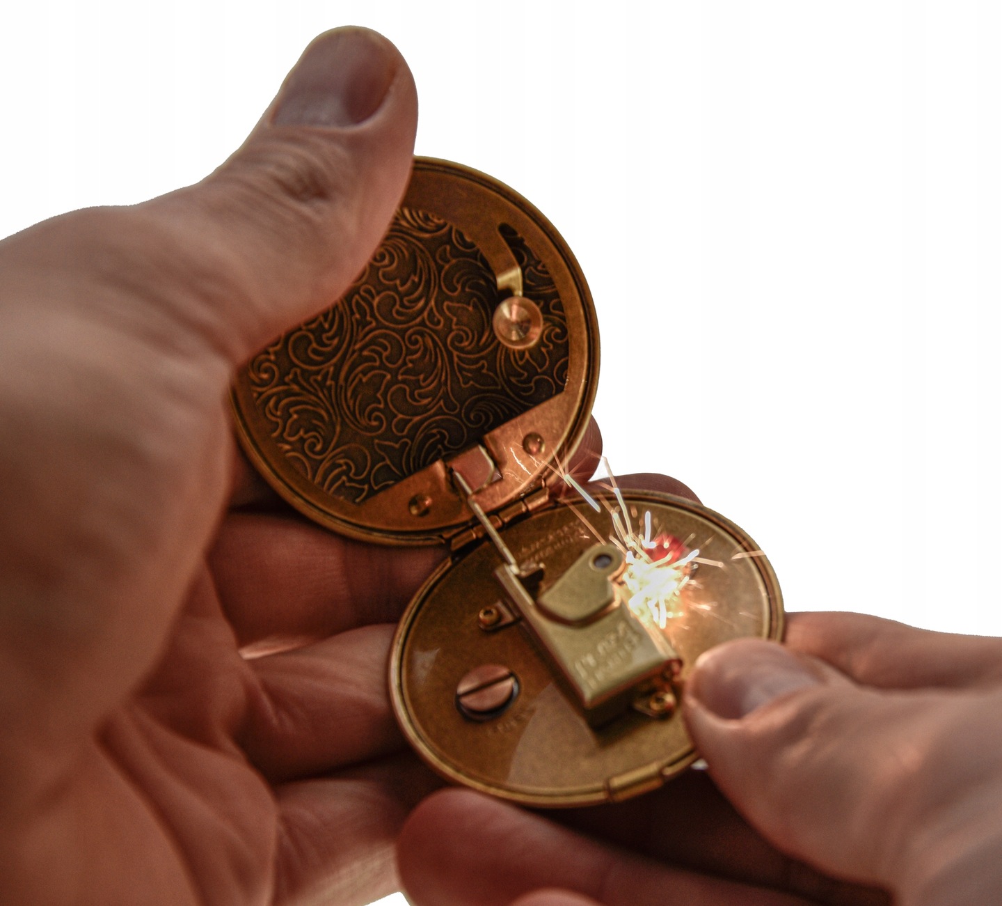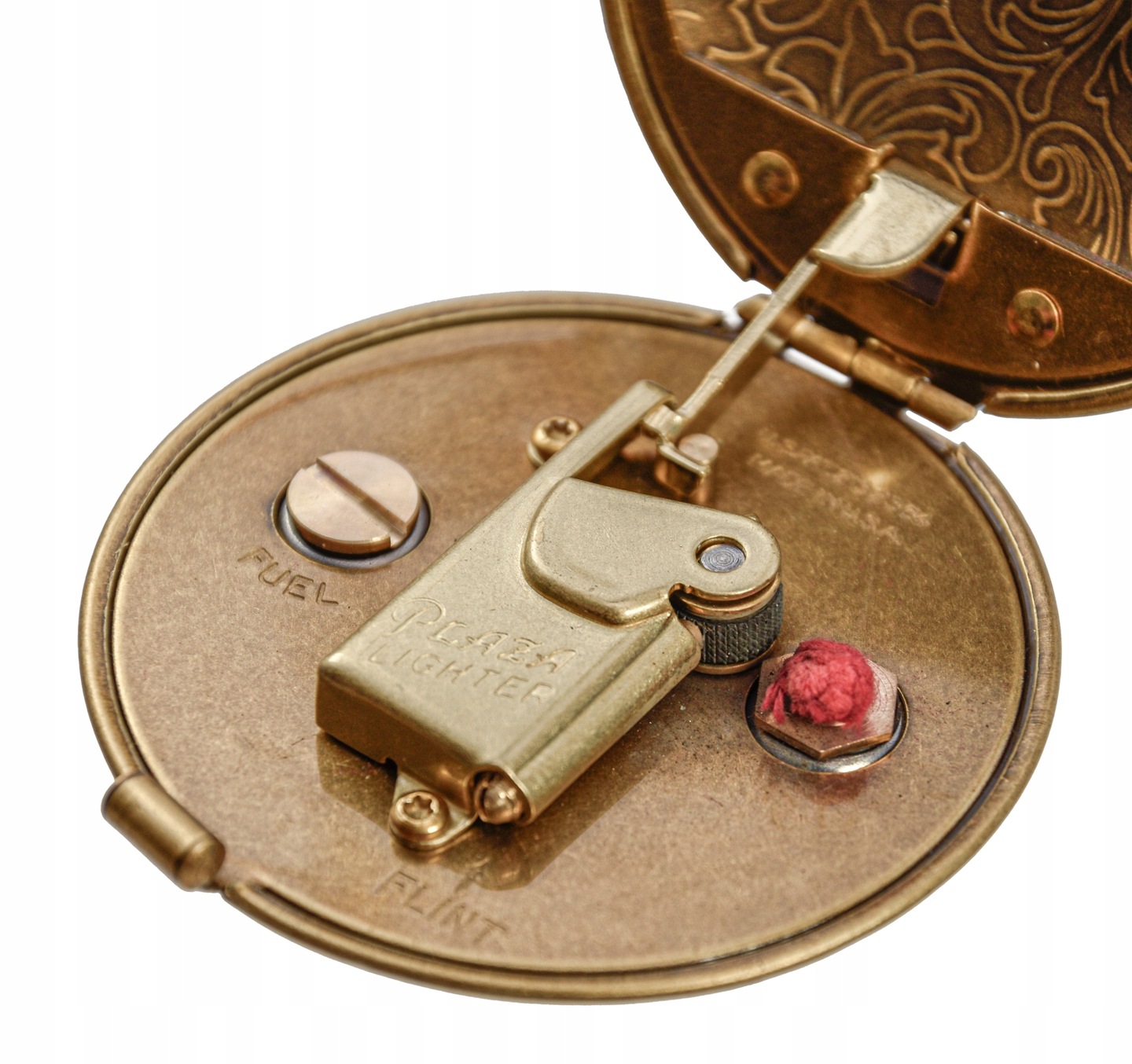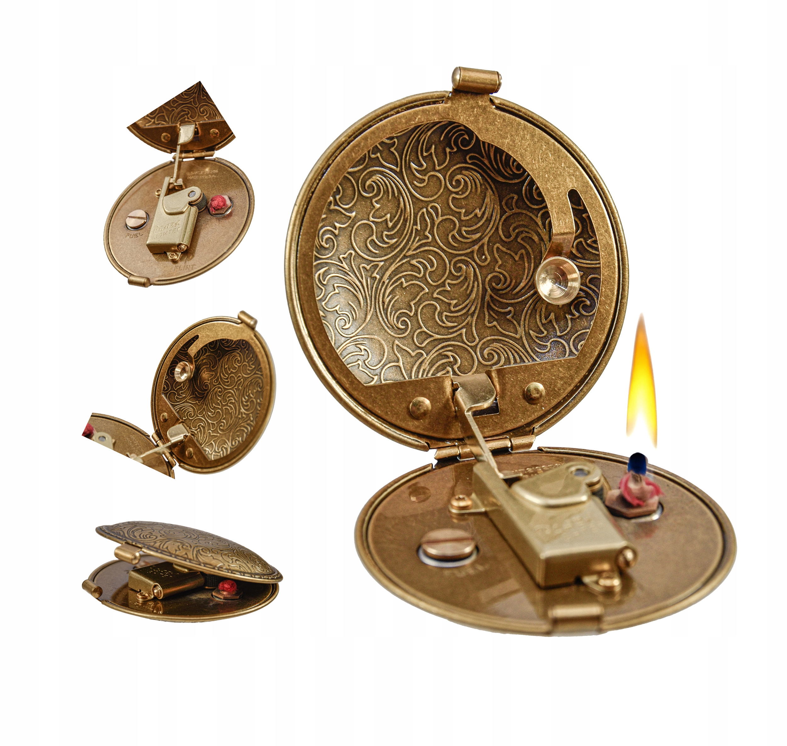 - Zawias stalowy umożliwiający płynne otwieranie i zamykanie zapalniczki.
