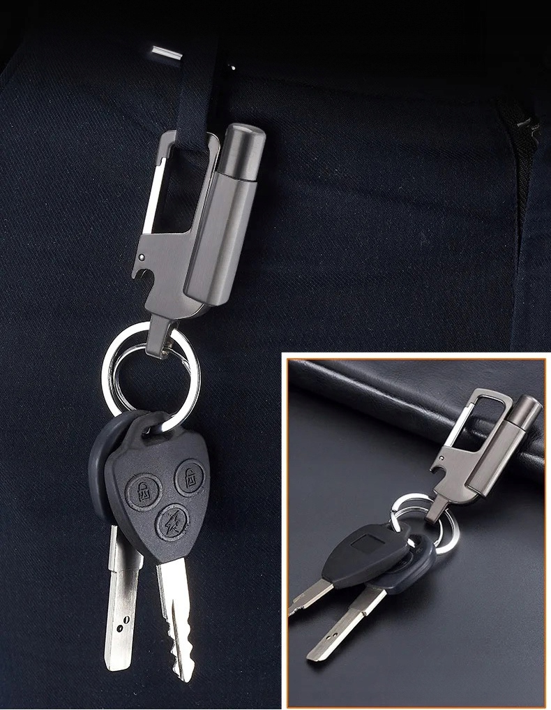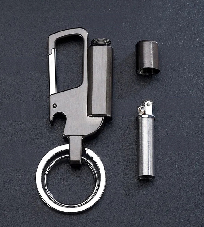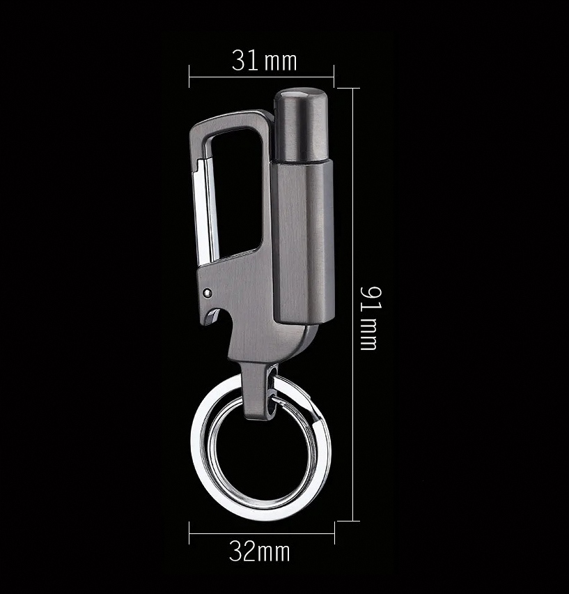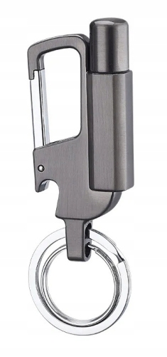 - Zapalniczka wyposażona jest w solidny karabińczyk dzięki czemu możemy ją przymocować np. do szlufki od spodni, czy placka, torebki.