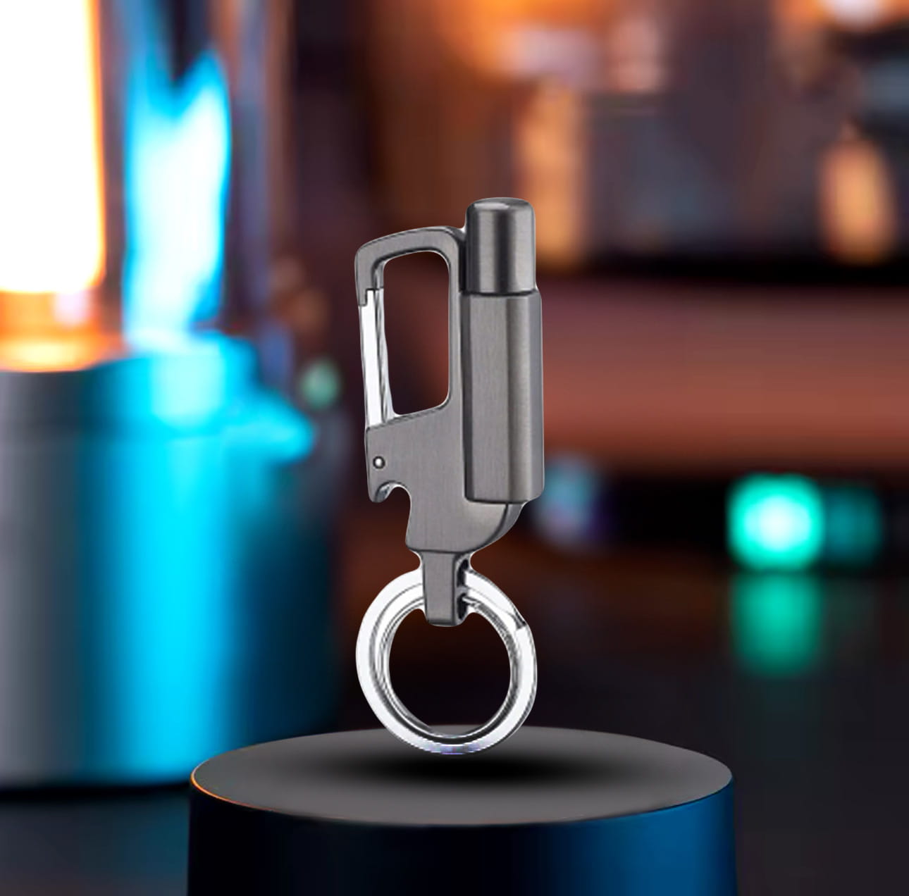 - Karabińczyk: Wbudowany karabińczyk umożliwia przypięcie zapalniczki do plecaka, kluczy, pasa czy innych akcesoriów, dzięki czemu zawsze będziesz miał ją pod ręką. To także przydatne narzędzie, które można wykorzystać do zawieszania różnych rzeczy w czasie podróży lub na zewnątrz.