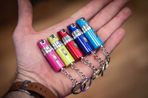 - Zapalniczkę można przywiesić sobie do kluczy dzięki mini łańcuszkowi z niklowanym kółeczkiem