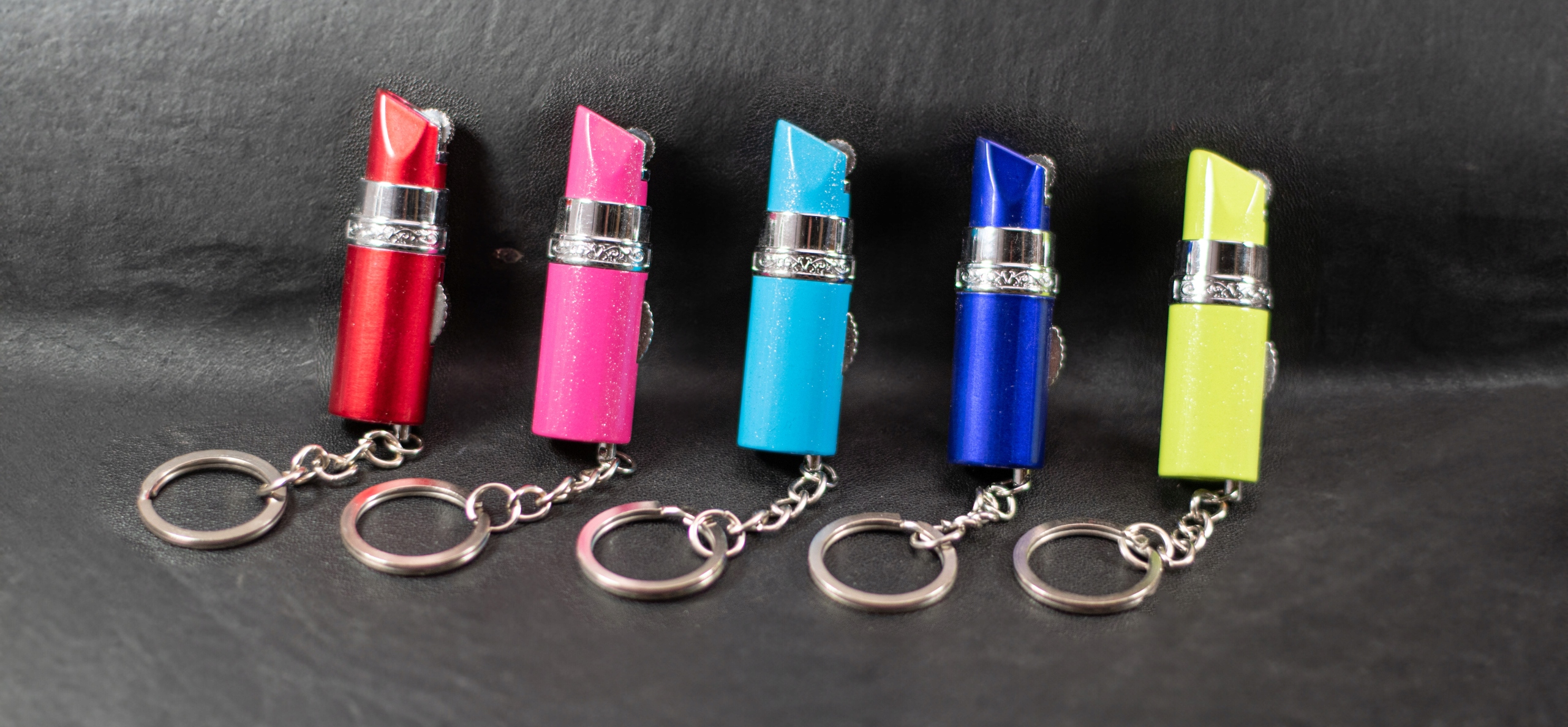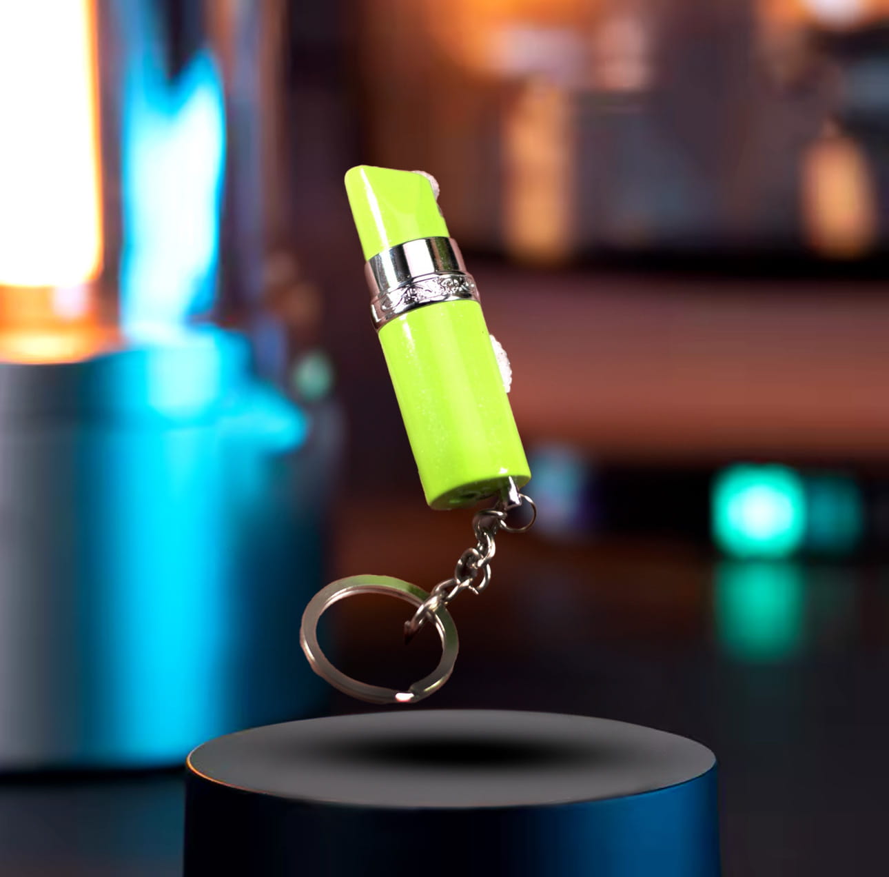 Metalowa zapalniczka płomieniowa w kształcie szminki na breloku z blokadą płomienia