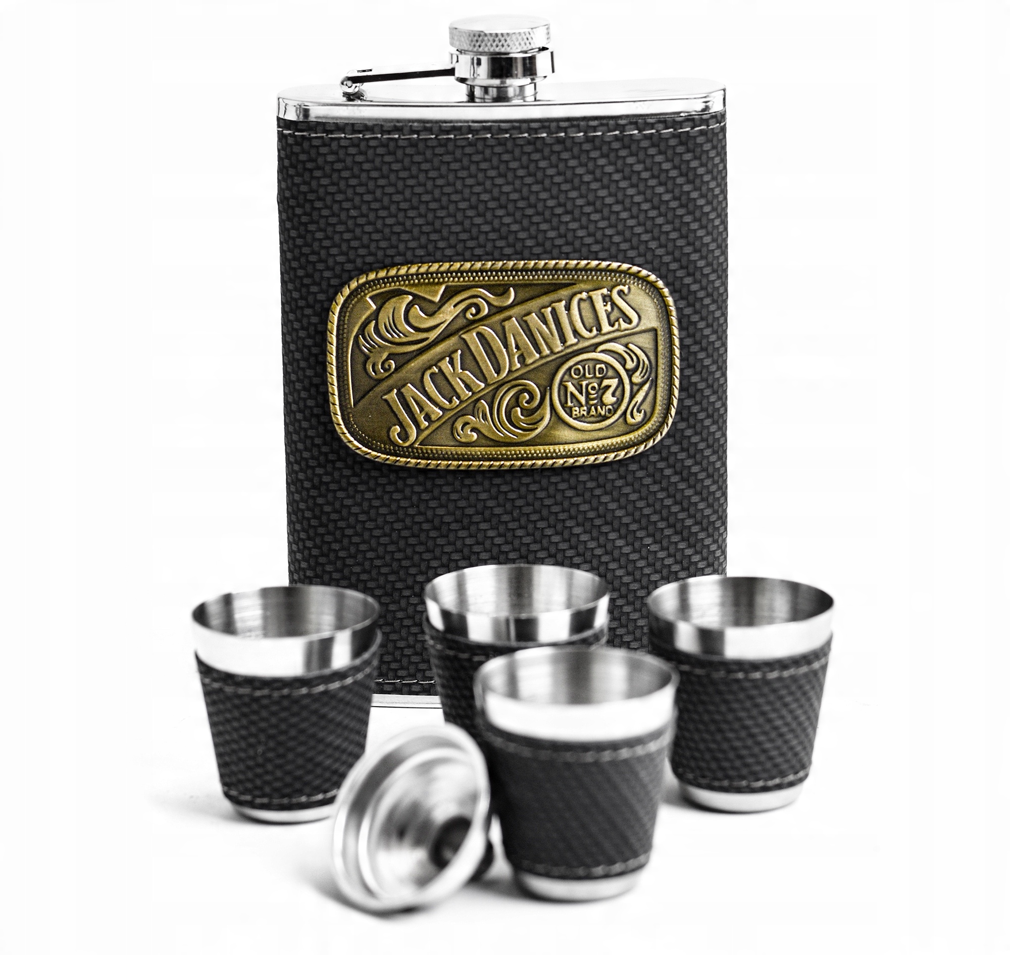- Piersiówka o pojemności 266 ml, wykonana z wysokiej jakości stali nierdzewnej, wyróżnia się stylowym obszyciem z eko skóry, które nadaje jej elegancki i nowoczesny wygląd. Na froncie piersiówki, widnieje duży emblemat metalowy z napisem Jack...