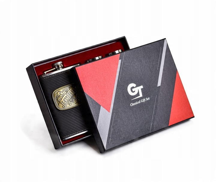 - Zestaw zawiera także cztery kieliszki ze stali nierdzewnej, również obszyte eko skórą, oraz praktyczny lejek, który ułatwia napełnianie piersiówki. Całość jest zapakowana w estetyczne kartonowe opakowanie z przykrywanym wiekiem, co sprawia, że ten wyjątkowy zestaw świetnie nadaje się na prezent.