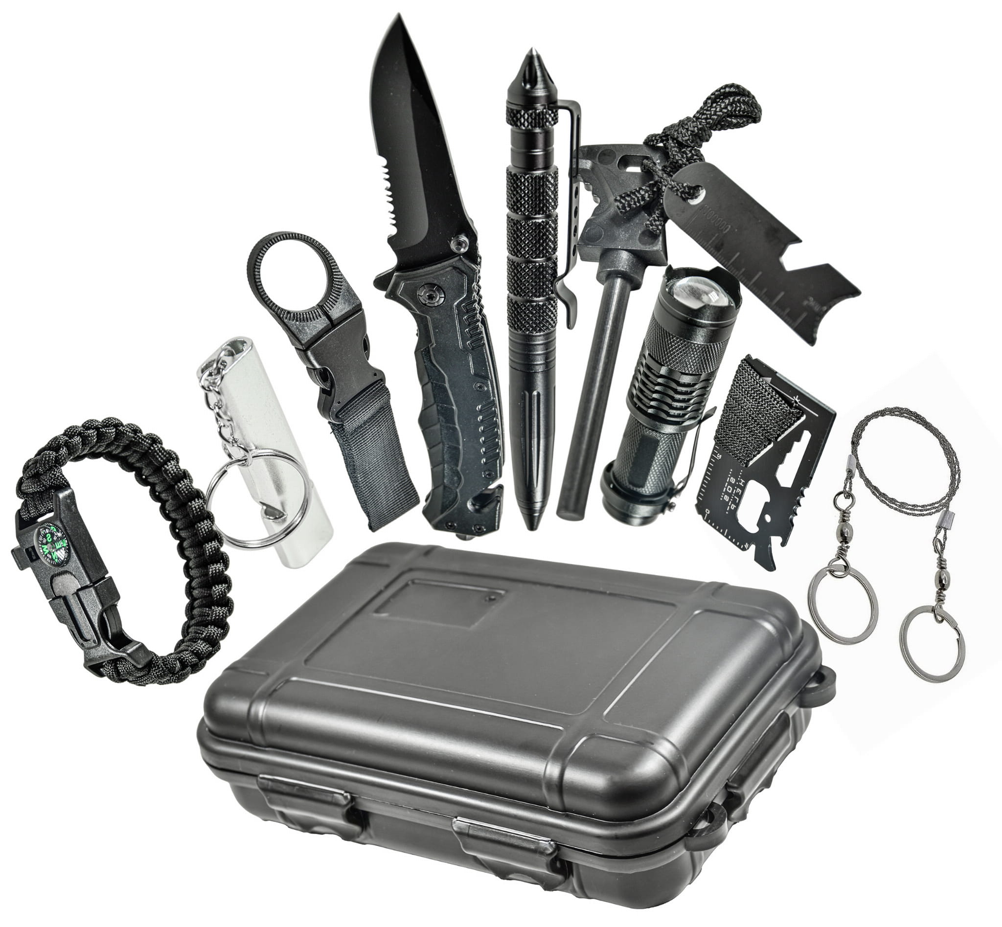 Zestaw przetrwania survival opaska nóż latarka kubotan krzesiwo piła karta